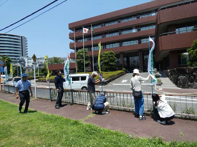 横断幕とのぼりでの呼びかけの様子 活動報告(社明運動)のぼり設置 2024.09.292025.09.30 7月の一か月間は生駒市役所の北面に社会を明るくする運動の横断幕を設置したり、市内にのぼりを立てて社会を明るくする運動のPRと犯罪予防の呼びかけを行いました。 横断幕設置 のぼり設置の様子