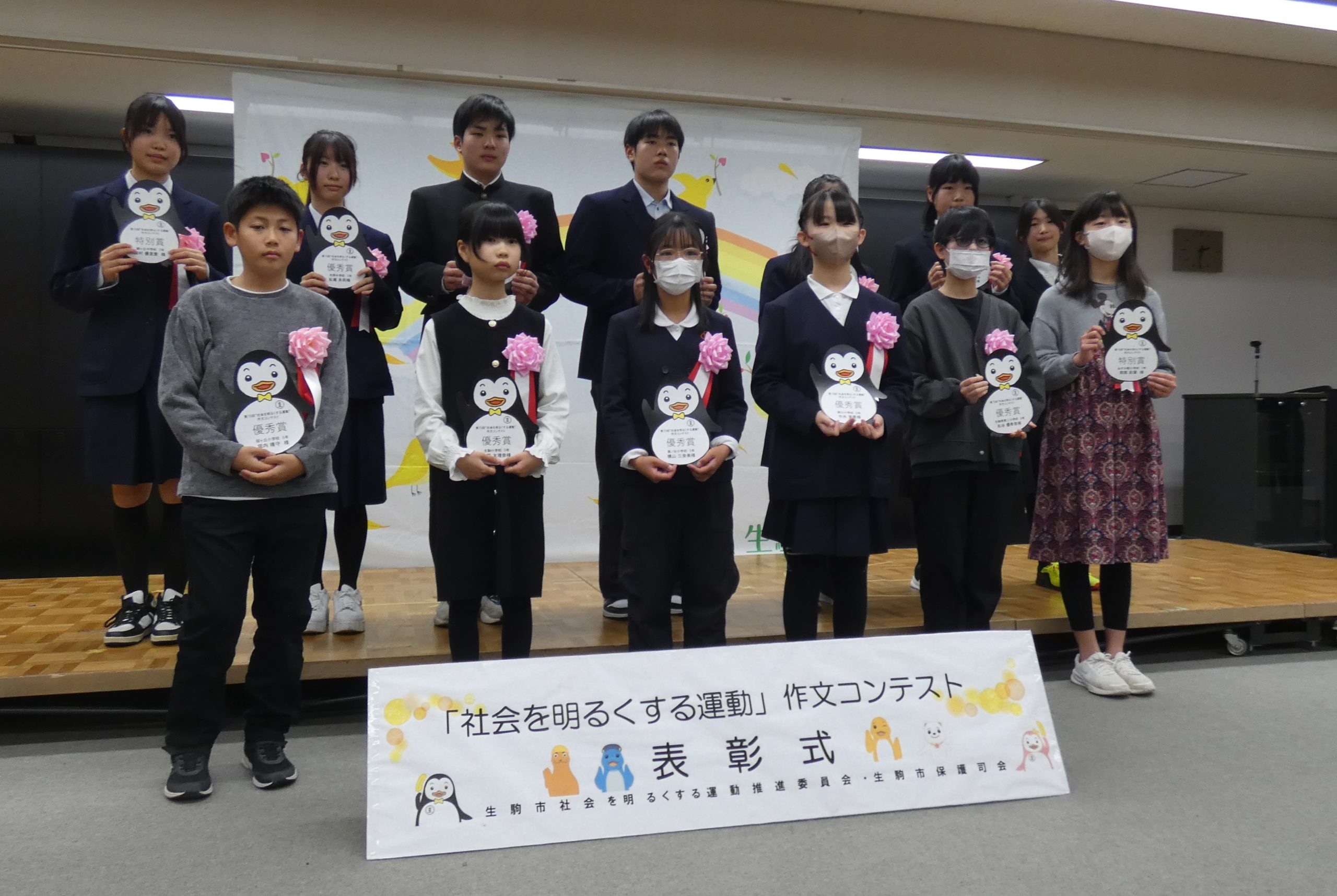 令和7年度作文コンテスト 活動報告(社明運動) 2024.09.292026.01.27 令和7年度受賞者の集合写真 作文コンテストでは市内すべての小・中学校に参加していただき、令和7年度は1681作品の参加がありました。 表彰式は12月24日に行われました。 ≪生駒市・過去の受賞者及び受賞作品≫